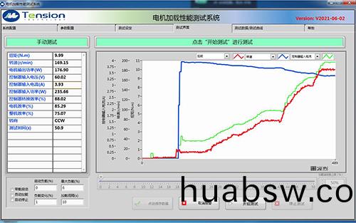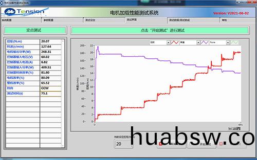 通过(guo)上位(wei)机(ji)软件(jian)将(jiang)被测电机(ji)运(yun)行在(zai)设(she)定的(de)或额(e)定电(dian)压(ya)下(xia),通过操作员(yuan)拉动(dong)软件上的加(jia)载(zai)滚动条(tiao),来控制(zhi)测功机给被(bei)测(ce)电机加载,并(bing)实(shi)时显(xian)示(shi)测(ce)试的数(shu)据与(yu)曲(qu)线,如(ru)工(gong)作(zuo)特性(xing)曲(qu)线图,T/N,T/I曲(qu)线(xian)等(具有单(dan)点手动控制功(gong)能,按(an)设定(ding)的(de)控(kong)制模(mo)式(shi)和(he)设定(ding)的控(kong)制(zhi)量(liang)控制电(dian)机(ji)工况)