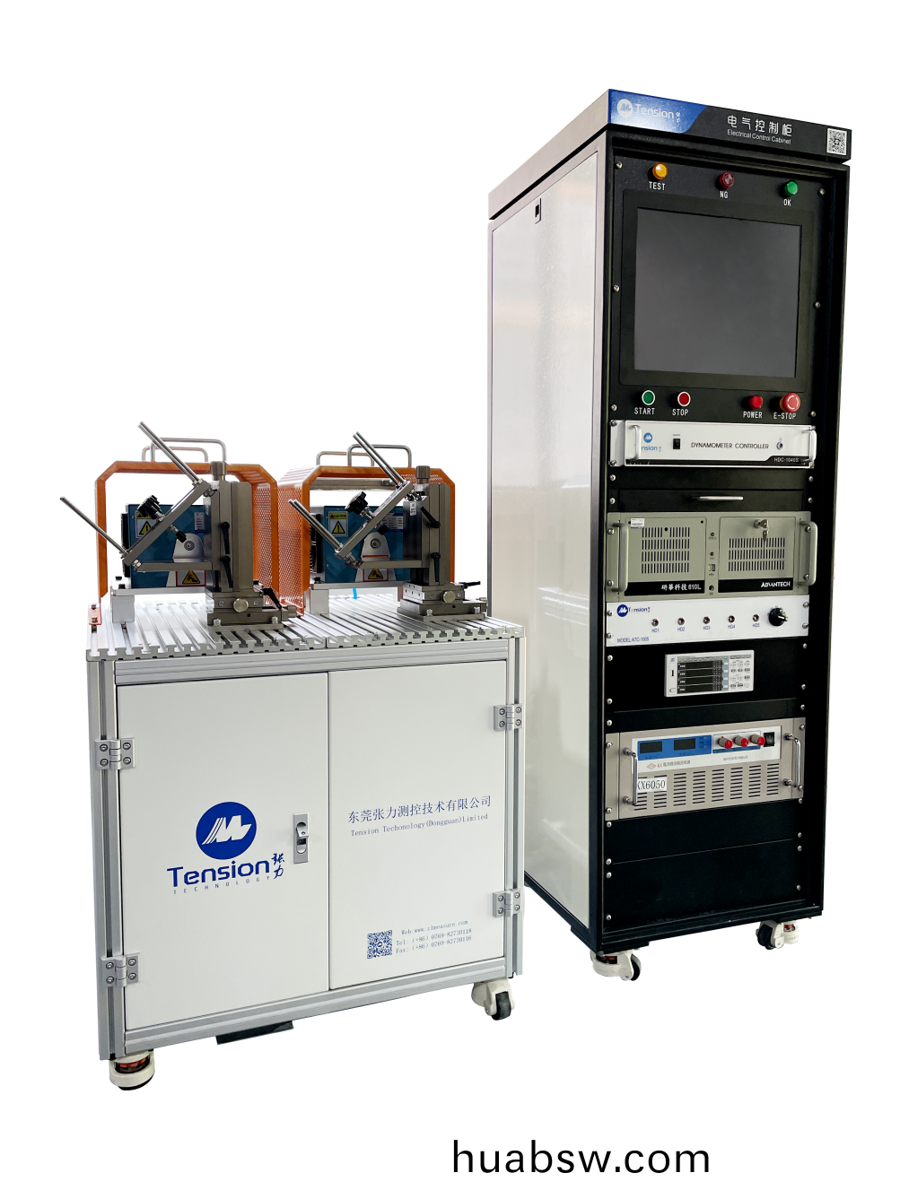 整套(tao)电机加载(zai)性(xing)能(neng)测试设(she)备(bei)由(you) HD-501/AHD-502 磁滞(zhi)测(ce)功机(ji)、测(ce)功(gong)机(ji)加载(zai)控制器(qi)、工(gong)业控制计(ji)算机、显(xian)示器、电(dian)参数(shu)仪(yi)、测(ce)试机架、测试(shi)工(gong)装、电(dian)机(ji)供电电(dian)源、电机测(ce)试软件等(deng)组成,测(ce)试被(bei)测电(dian)机(ji)的(de)扭矩(ju)、转(zhuan)速、输出功率、电压、电流(liu)、输(shu)入功(gong)率(lv)、转向等(deng)各种(zhong)性能(neng)参数。