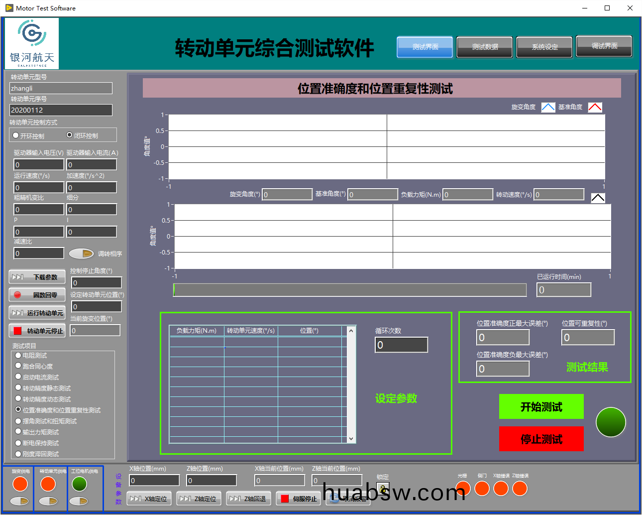 通(tong)过(guo)设定负(fu)载力矩,转(zhuan)动单元速(su)度(du),位置,循环(huan)次数(shu),转(zhuan)动单元在(zai)不同(tong)的工(gong)况下往复运(yun)行(xing),测量(liang)转(zhuan)动单(dan)元(yuan)的控(kong)制(zhi)精度。