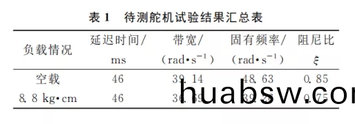 按照(zhao)上(shang)述系统延迟修(xiu)正(zheng)方(fang)法(fa)对所(suo)有(you)原(yuan)始(shi)试(shi)验数(shu)据(ju)进行了处(chu)理(li)分析(xi),汇(hui)总(zong)得到该(gai)型(xing)舵(duo)机最(zui)终试验结(jie)果如(ru)表(biao)1所示(shi),根(gen)据(ju)表(biao)1结果(guo)可知(zhi),在(zai)有(you)负(fu)载情况(kuang)下待(dai)测舵(duo)机带(dai)宽和阻尼比技(ji)术指标略有下(xia)降。