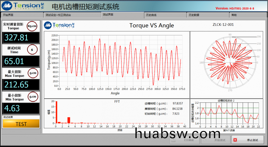 2)实(shi)时记录(lu)被测电机(ji)从0°— 380°的(de)力矩波(bo)形(xing);