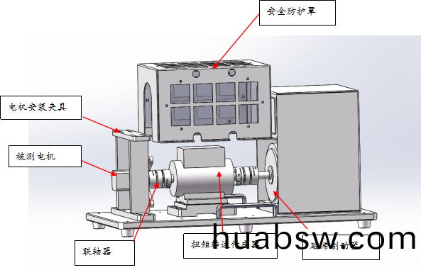 磁滞制动(dong)器输出轴(zhou)通过高精度弹(dan)性(xing)联轴(zhou)器与(yu)扭(niu)矩转(zhuan)速传(chuan)感(gan)器的一(yi)端(duan)输(shu)出轴(zhou)连(lian)接(jie),扭(niu)矩转(zhuan)速(su)传(chuan)感(gan)器另外一端输出(chu)轴通过高(gao)精(jing)度弹(dan)性联(lian)轴(zhou)器与被测电(dian)机的输(shu)出轴(zhou)连(lian)接。安(an)全方面(mian)涉及到旋转部(bu)分(fen)的(de)装(zhuang)置全部(bu)由金(jin)属(shu)+亚克(ke)力(li)安全(quan)防(fang)护罩(zhao)包裹(guo)。测(ce)试底板下安(an)装了6个(ge)减震座减(jian)小(xiao)在(zai)测(ce)试(shi)时(shi)的振动(dong)带来(lai)的测试(shi)误(wu)差。